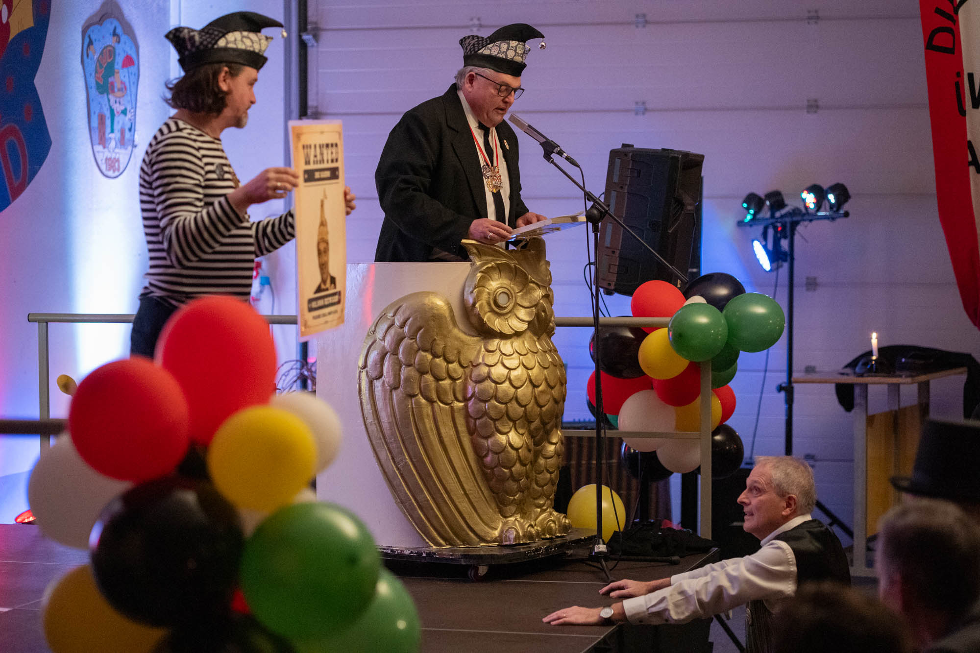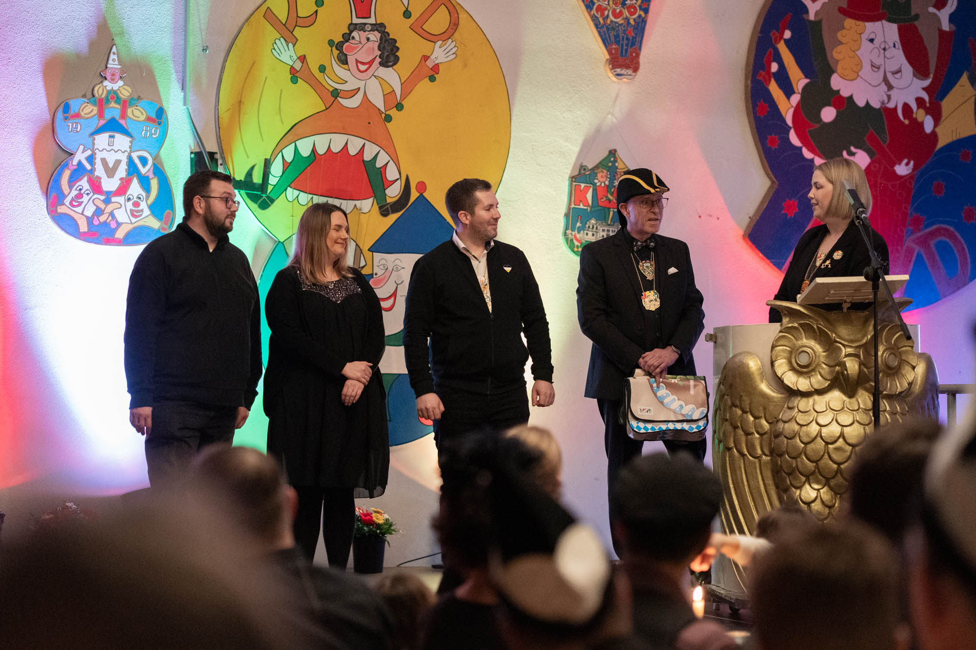 Ein emotionaler Moment der Fastnachtsbeerdigung war die Verabschiedung von Bernd Wolfenstädter, der die Fastnacht als Sitzungspräsident über viele Jahre mitgeprägt hat. Mit großem Applaus und viel Dankbarkeit wurde sein Engagement mit einem Lied, gesungen von Bühnenaktiven und einer passenden Rede seiner drei Kinder Marius, Nils und Doreen Wolfenstädter gewürdigt.