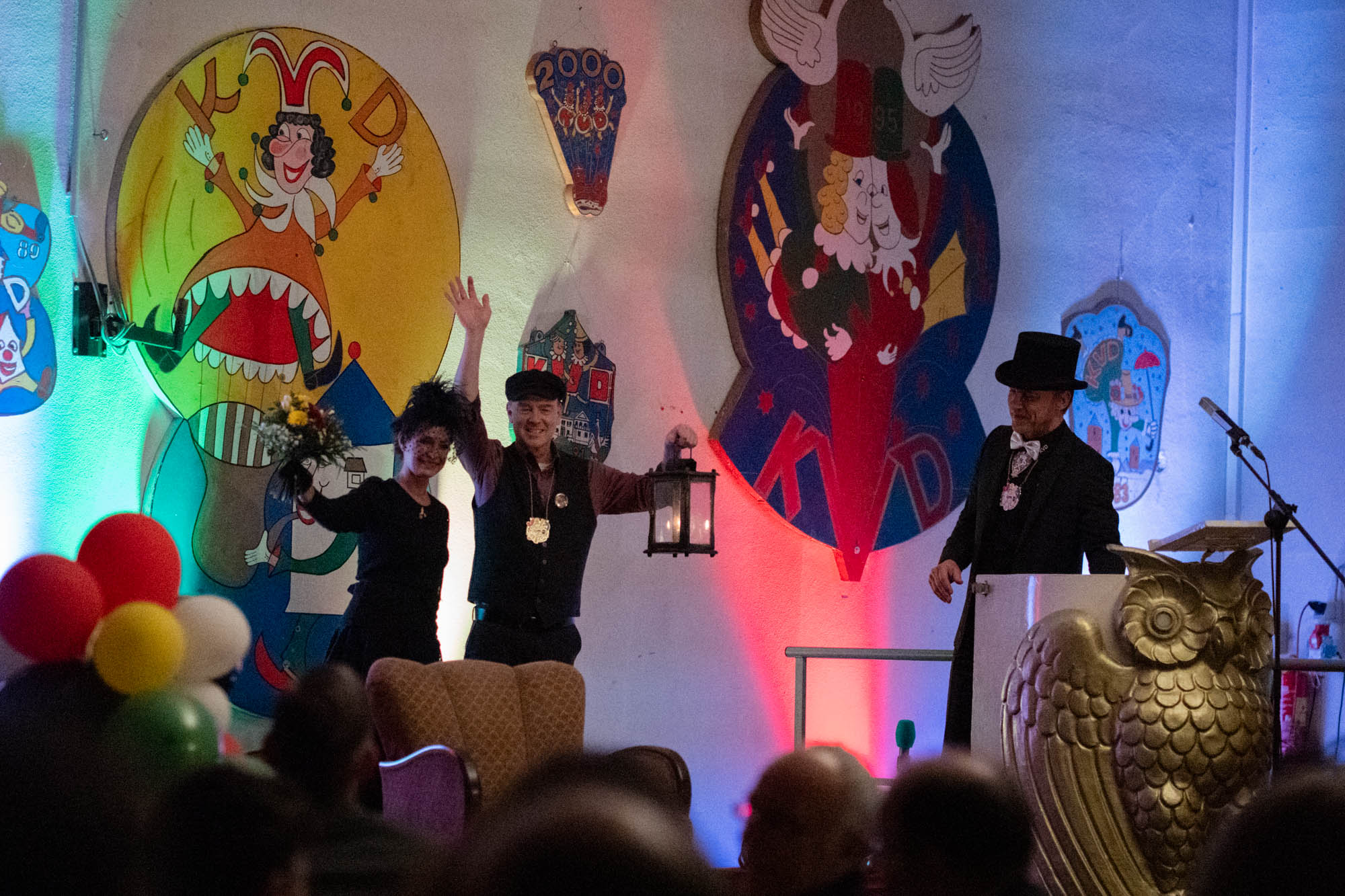 Ein emotionaler Moment der Fastnachtsbeerdigung war die Verabschiedung von Bernd Wolfenstädter, der die Fastnacht als Sitzungspräsident über viele Jahre mitgeprägt hat. Mit großem Applaus und viel Dankbarkeit wurde sein Engagement mit einem Lied, gesungen von Bühnenaktiven und einer passenden Rede seiner drei Kinder Marius, Nils und Doreen Wolfenstädter gewürdigt.